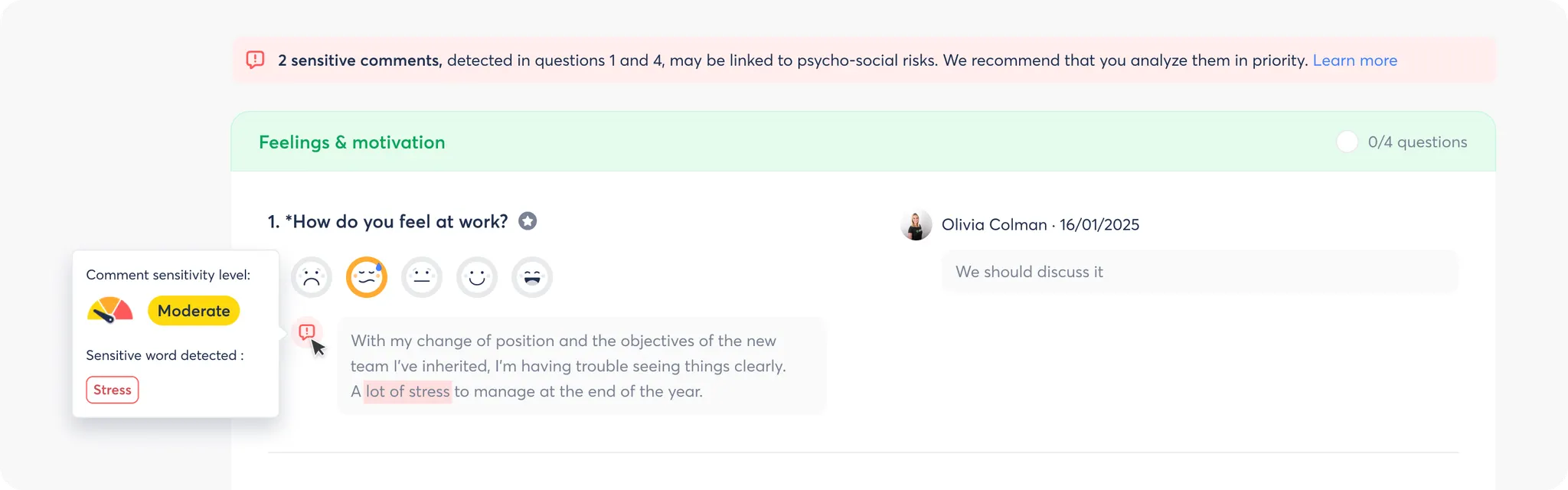 👉 Immediately detect and deal with weak signals and psycho-social risks within your teams.
