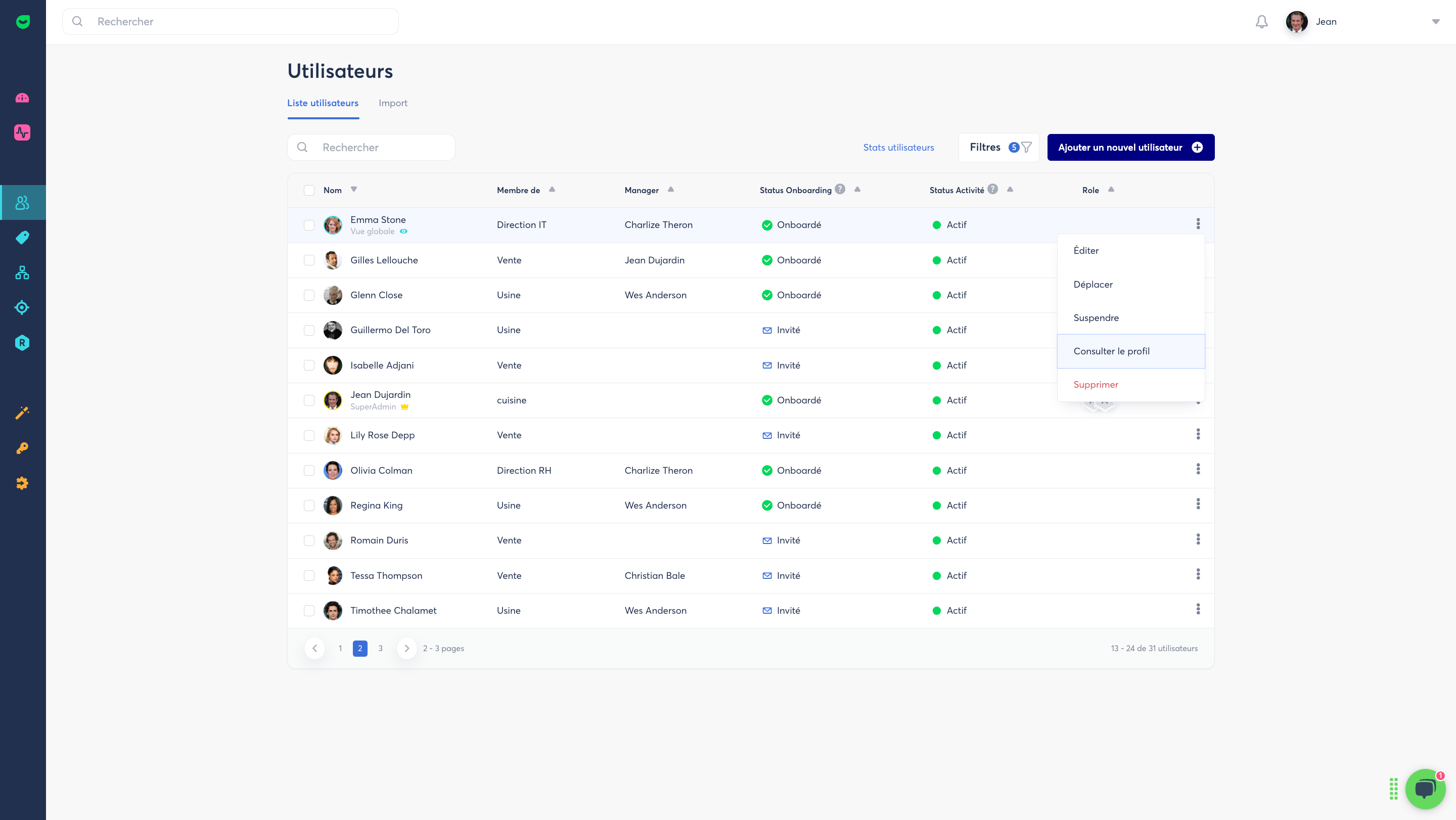 - From the Back Office, go to the Users tab to access the Zest database. A “View profile” action is available for each employee and opens the profile page in a new tab