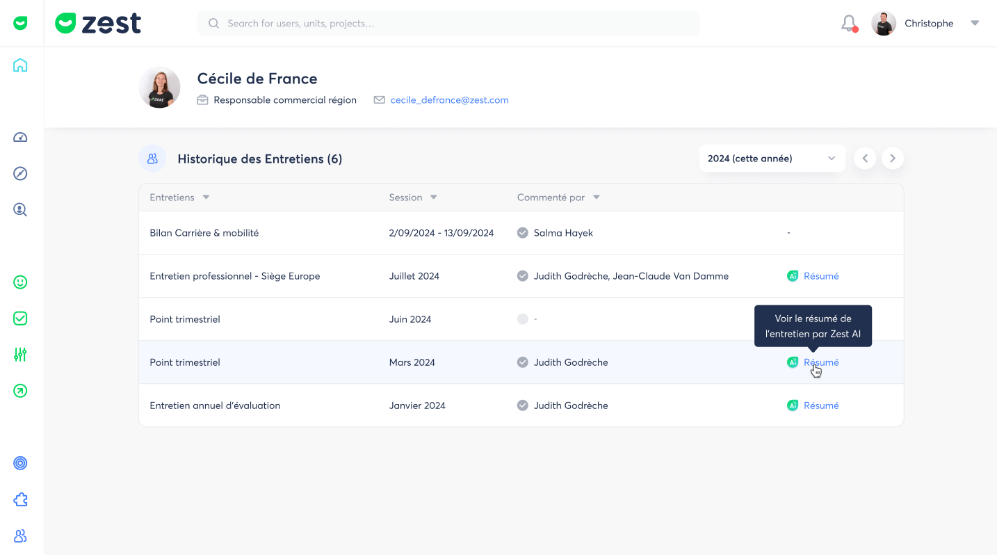 💫 A few weeks ago, Zest added AI to your reviews to generate summaries that help you analyze them quickly and optimize decision-making. Now, we provide an employee profile containing the interview history for every user in your workspace.