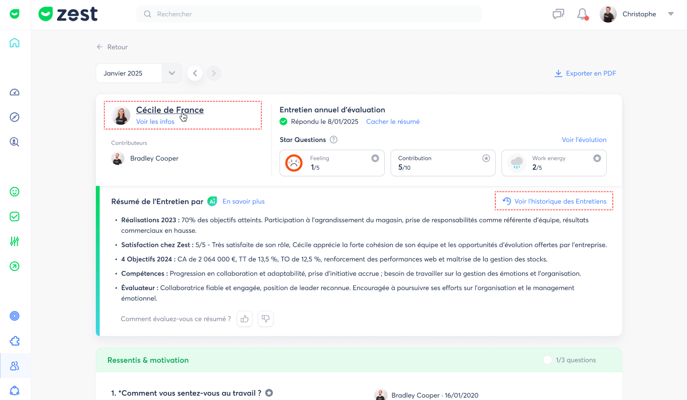 🌟 Access, in one click, the history of reviews conducted for each employee.