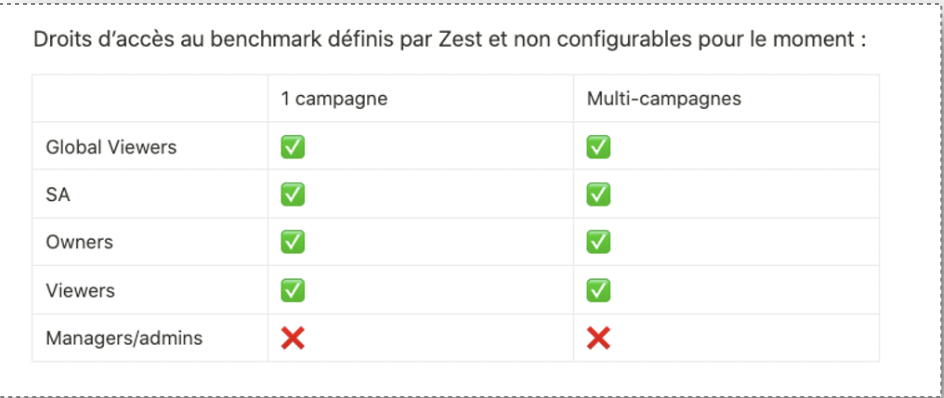 - Accès réservé aux Super Admins et Global Viewers (vue multi-campagnes).