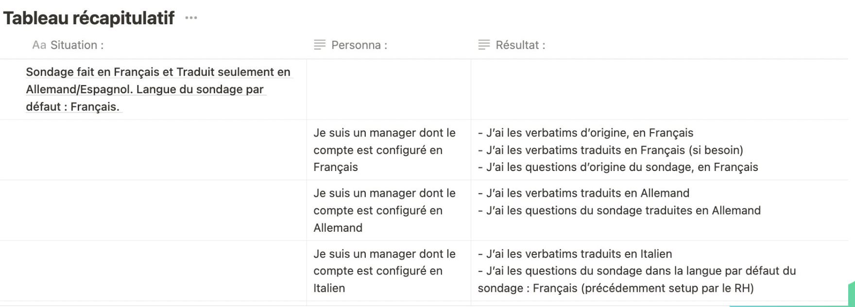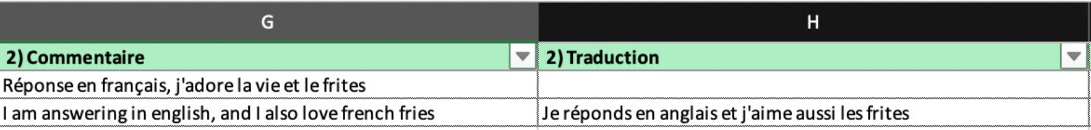 - Les réponses aux questions ouvertes sont automatiquement affichées dans la langue d’usage (celle définie dans le compte de la personne qui analyse).