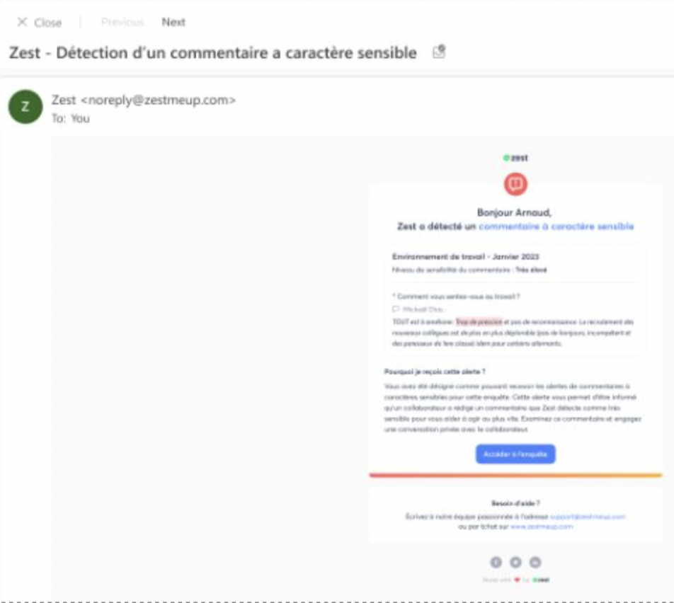 - En cliquant, il arrive directement sur la conversation dans Zest.