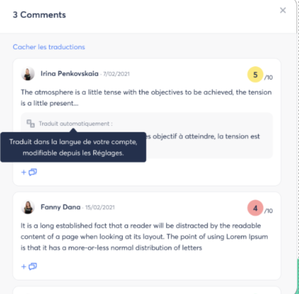 - Un indicateur permet d’identifier ceux qui sont traduits.