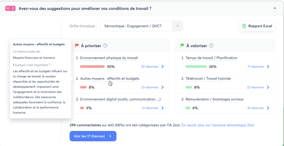 L’Engageomètre V2 permet d’aller au-delà des scores en analysant les commentaires et questions ouvertes.