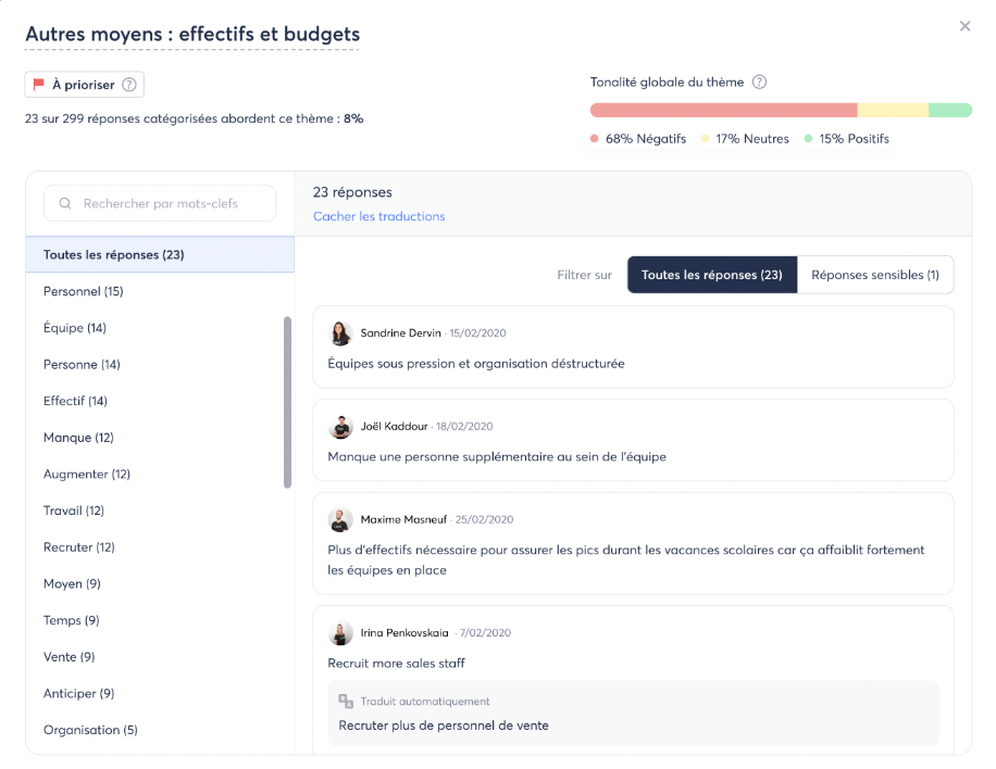Objectif : identifier rapidement les thèmes clés, leur tonalité et les priorités d’action.