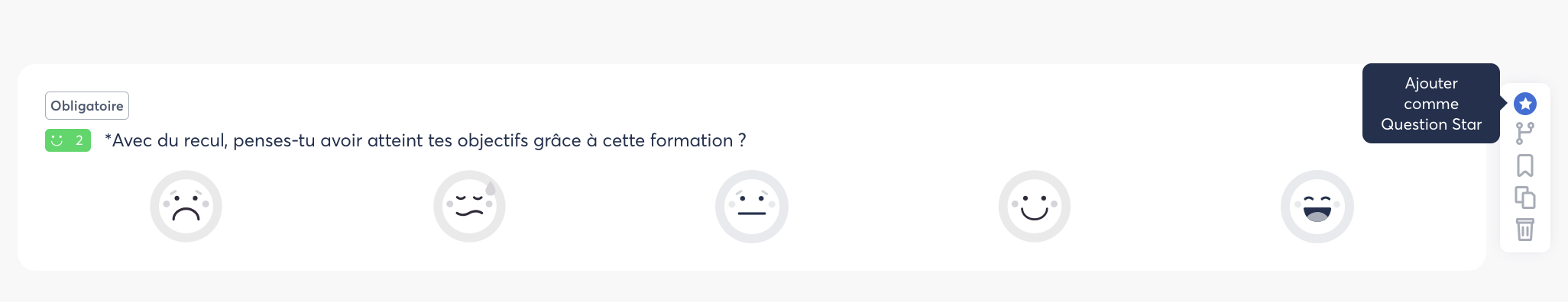 - Les Questions Stars sont identifiables grâce à un pictogramme dédié dans la liste de vos questions