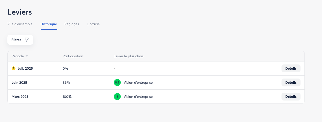 Vous trouverez le listing des campagnes qui ont été effectuée avec, pour chacun d’entre elle, un bouton détail.