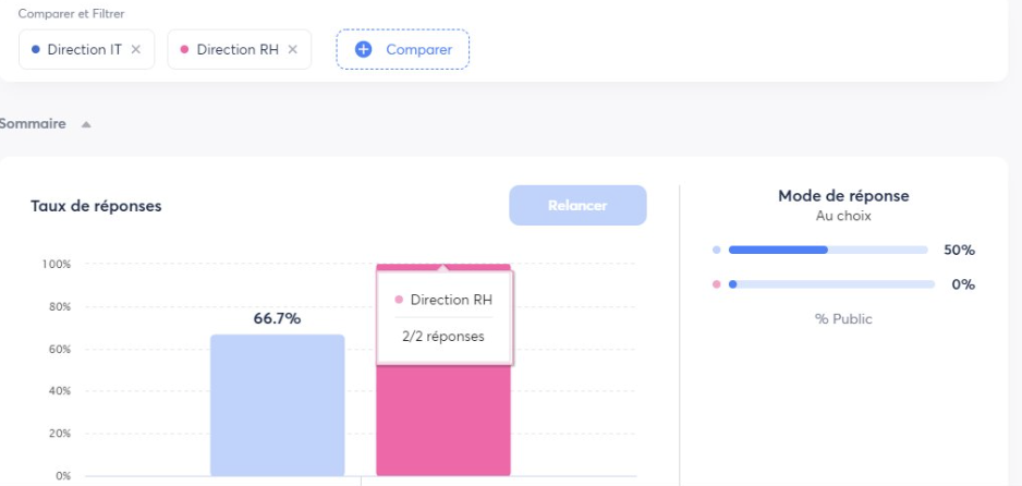 Cette fonctionnalité est utile pour comparer différentes équipes, sites ou entités entre elles sur une même question.