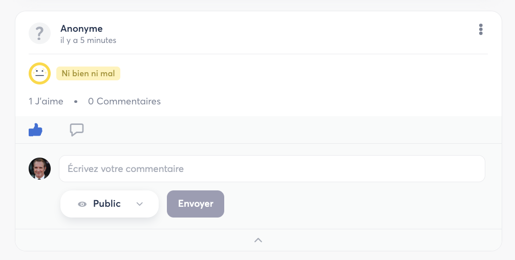 Sur un commentaire, il est également possible d’ajouter un commentaire à une humeur laissé par un autre salarié, anonyme ou non.