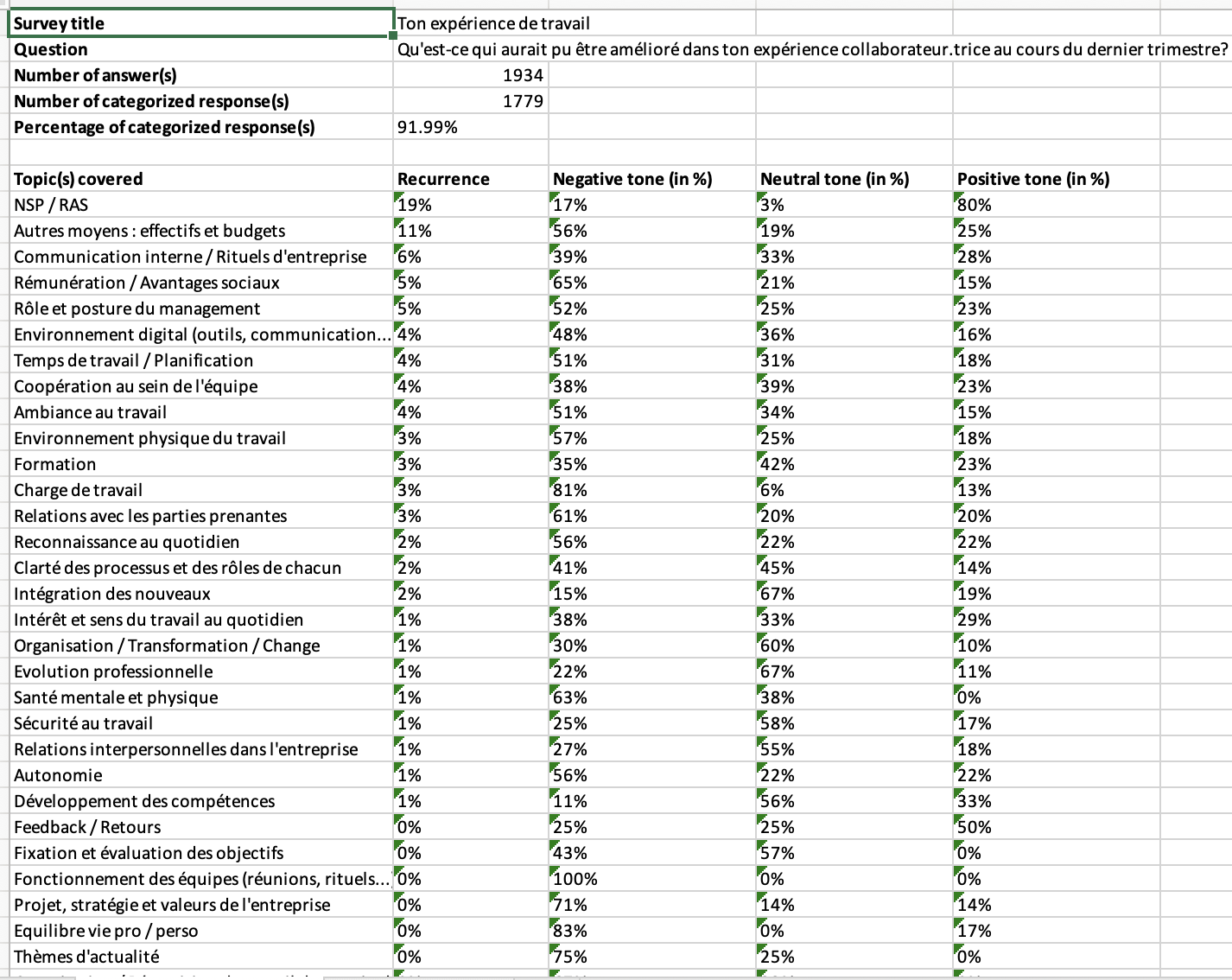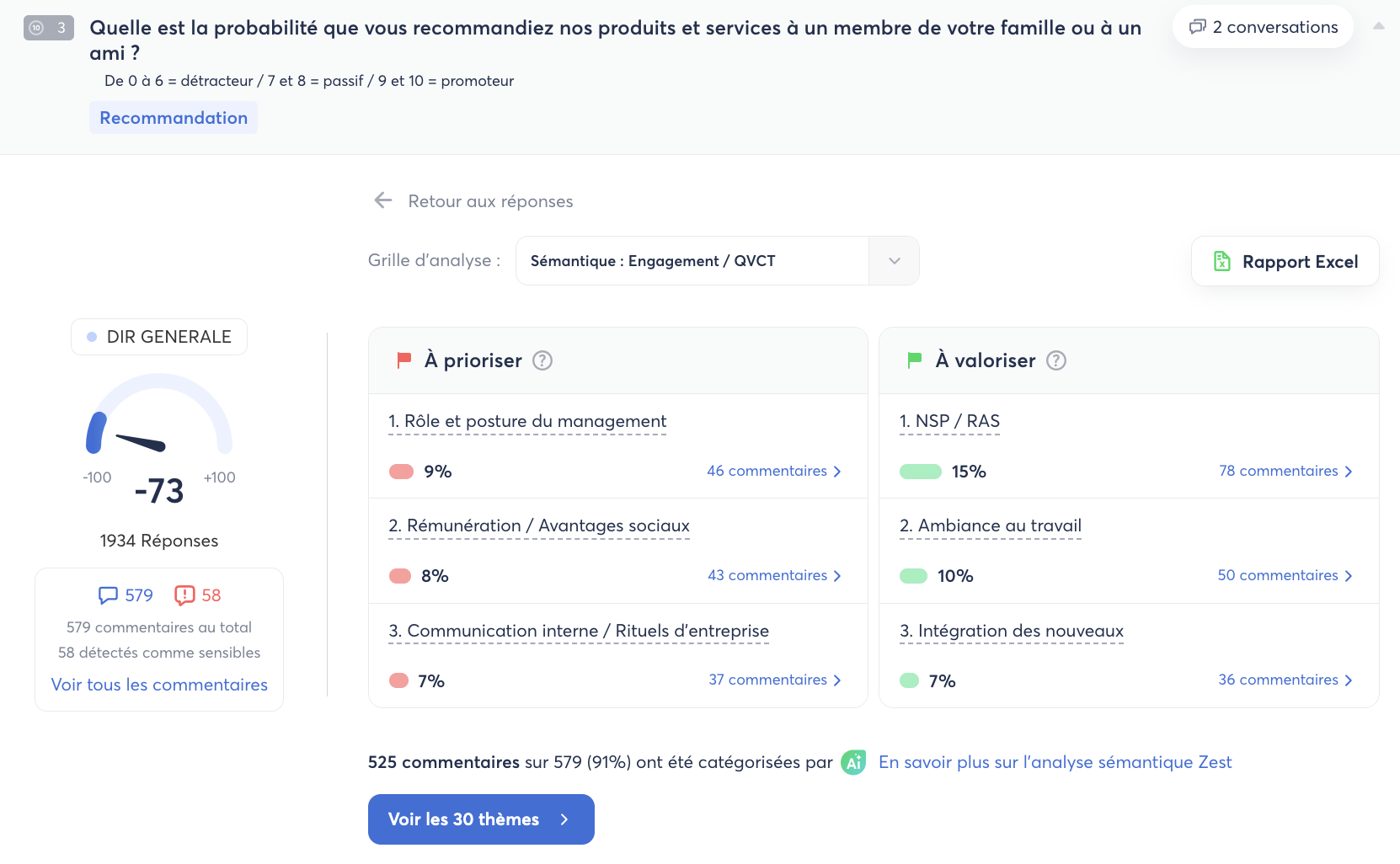 Zest vous permet également d’exporter les verbatims sensibles des répondants.