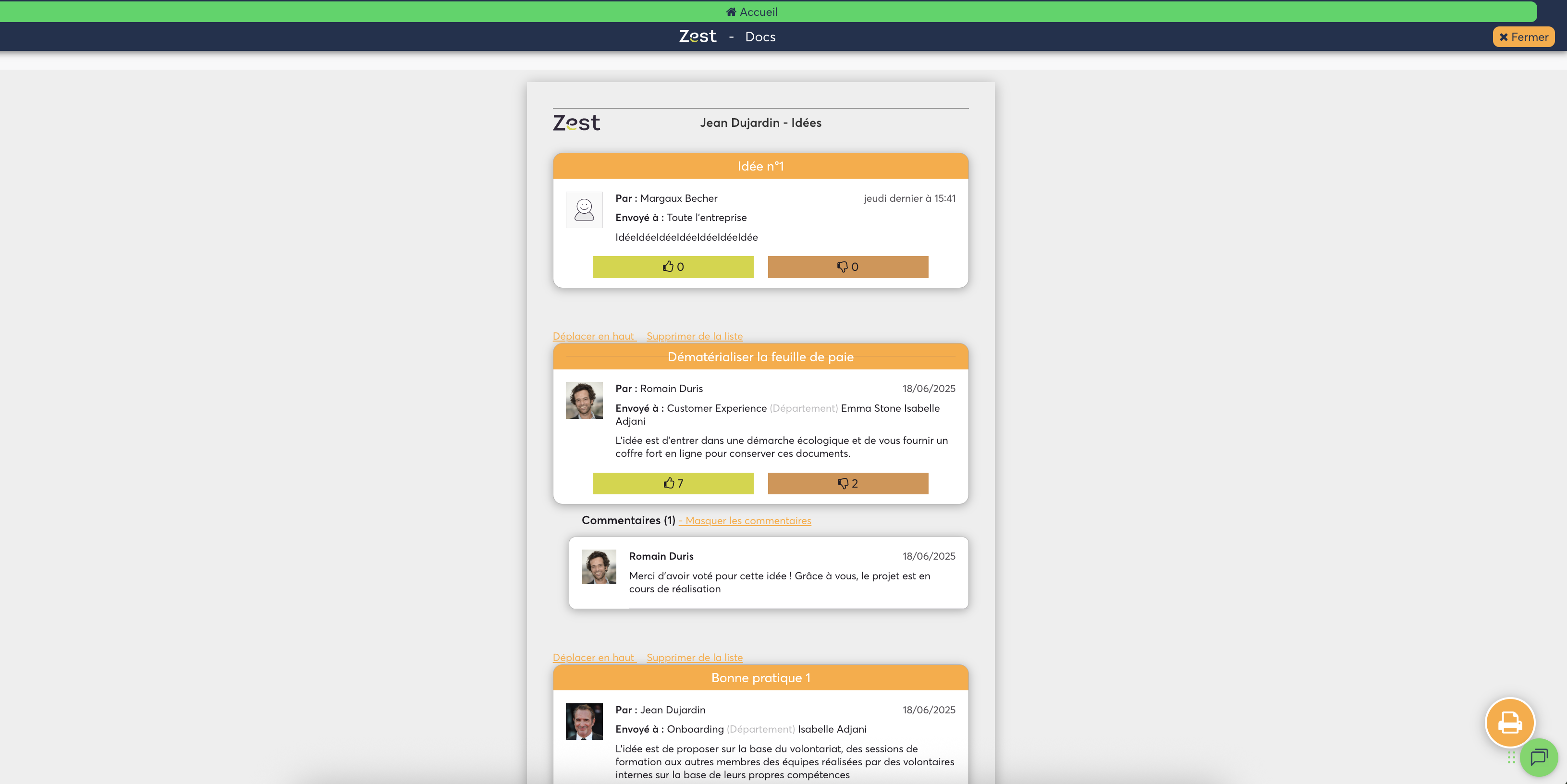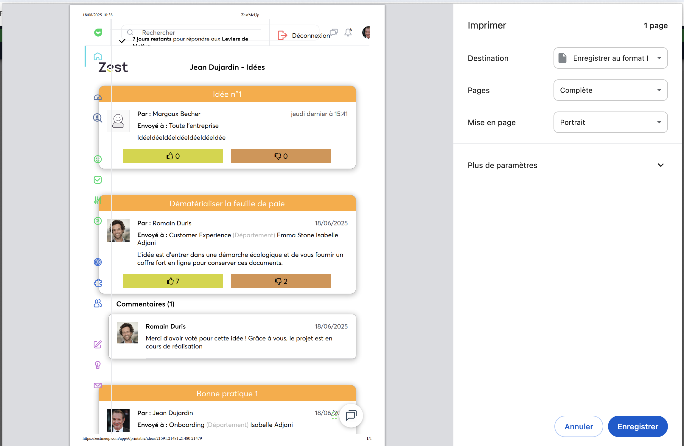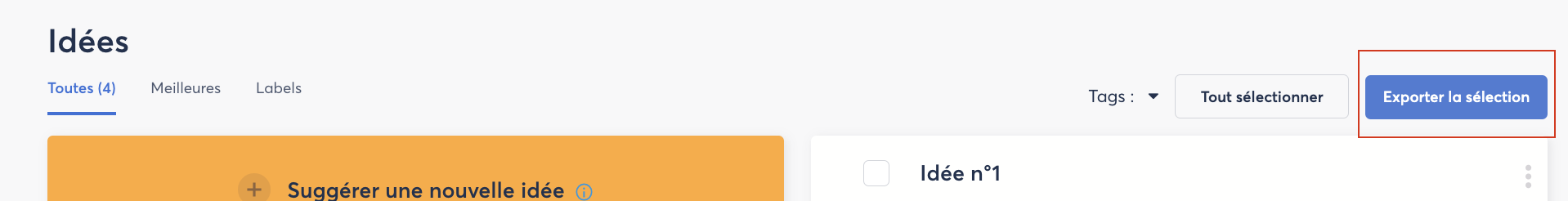 Pour exporter les idées, vous avez accès à un bouton en haut à droite Exporter la séléction 👇🏼