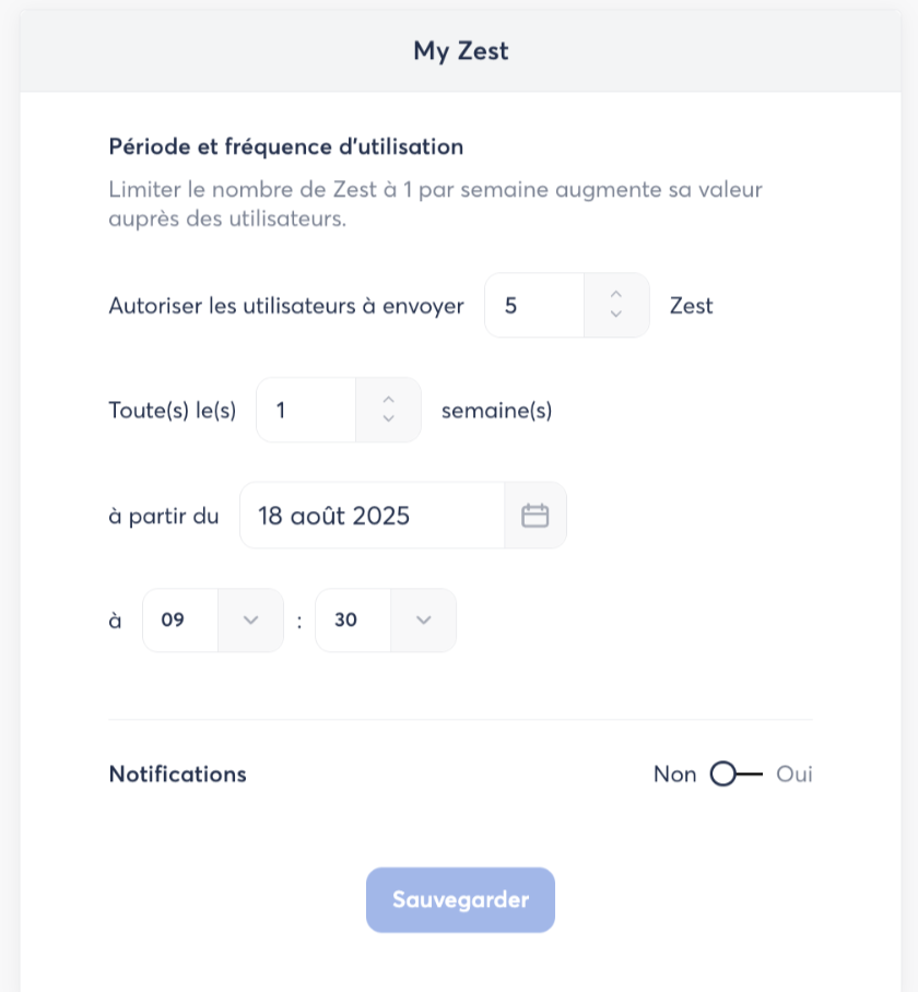 • D’ajuster le nombre de Zest à envoyer par semaine (ou fréquence défini en dessous)