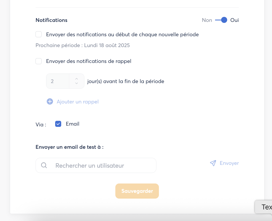 • A partir de quand l’automatisation des notifications est envoyée ainsi que l’heure