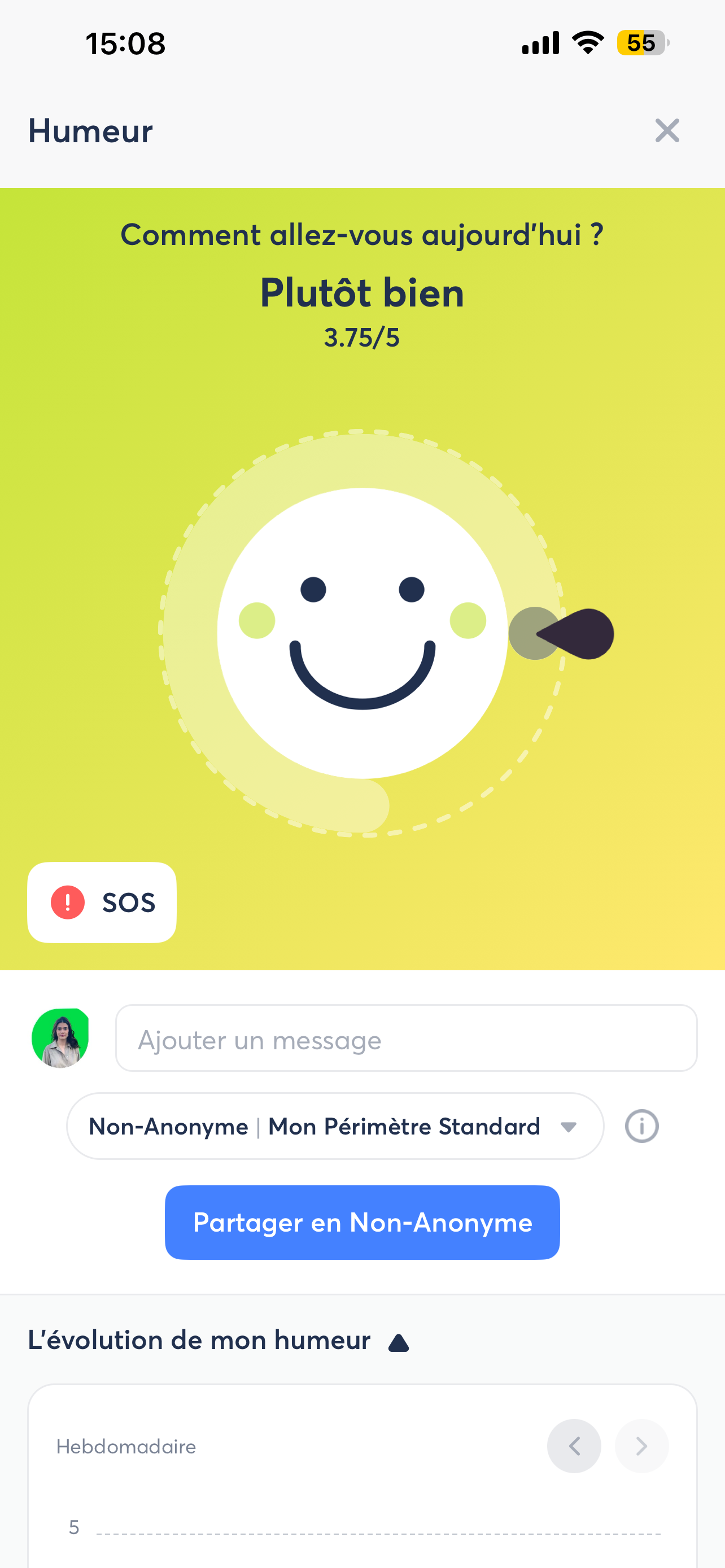 - Les collaborateurs peuvent partager leur humeur spontanément, à tout moment.