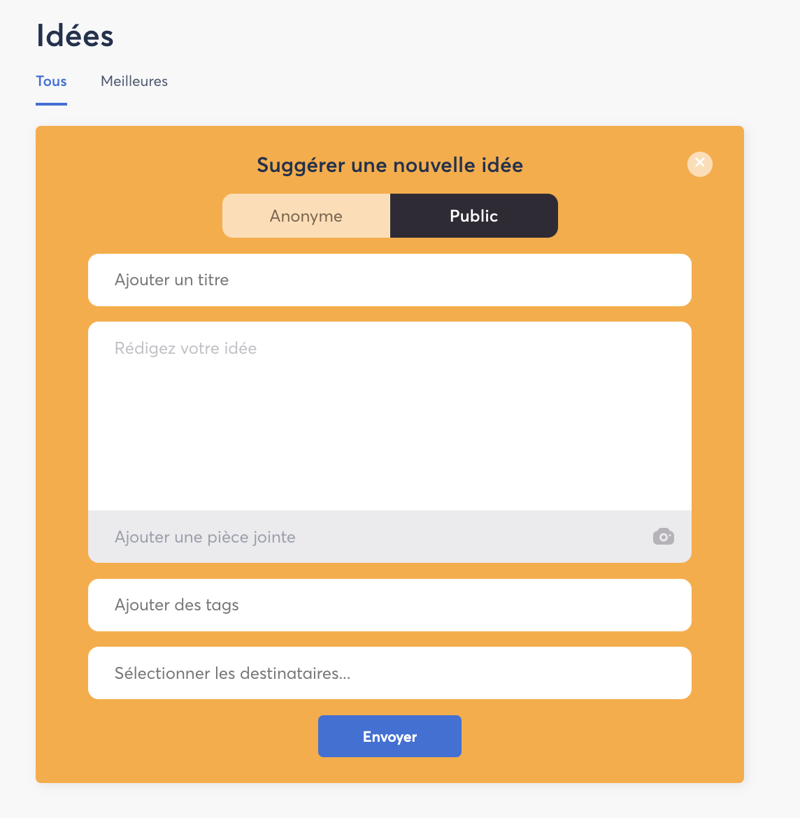 En tant que salarié : rendez-vous dans l’onglet Idées puis Suggérer une nouvelle idée: