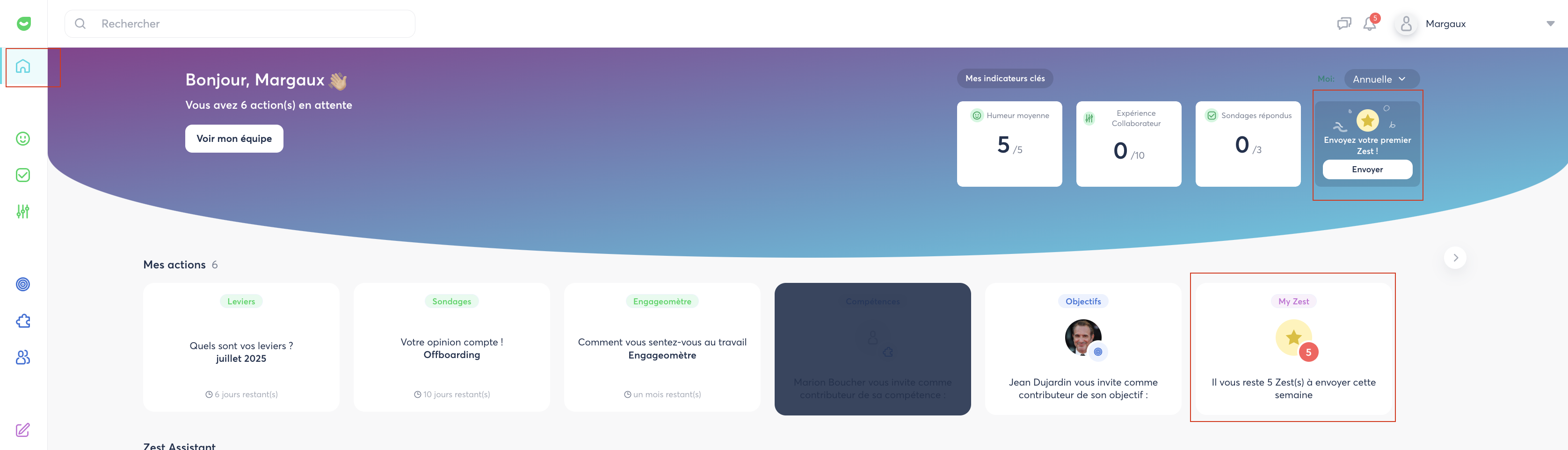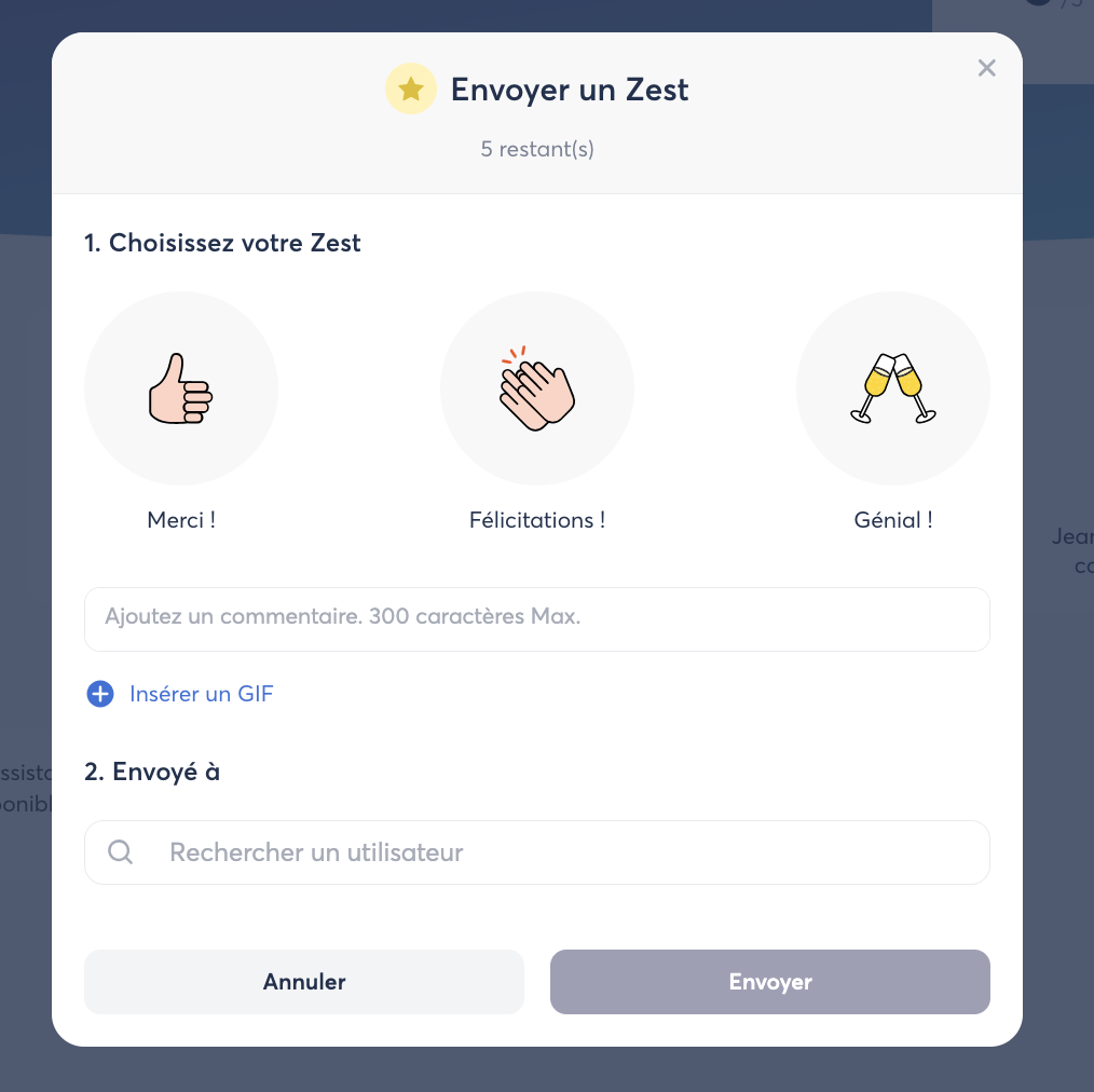 Le MyZest est l’outil idéal pour partager de la reconnaissance positive, encourager, célébrer ou valoriser un collègue.