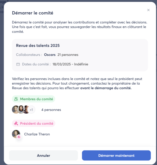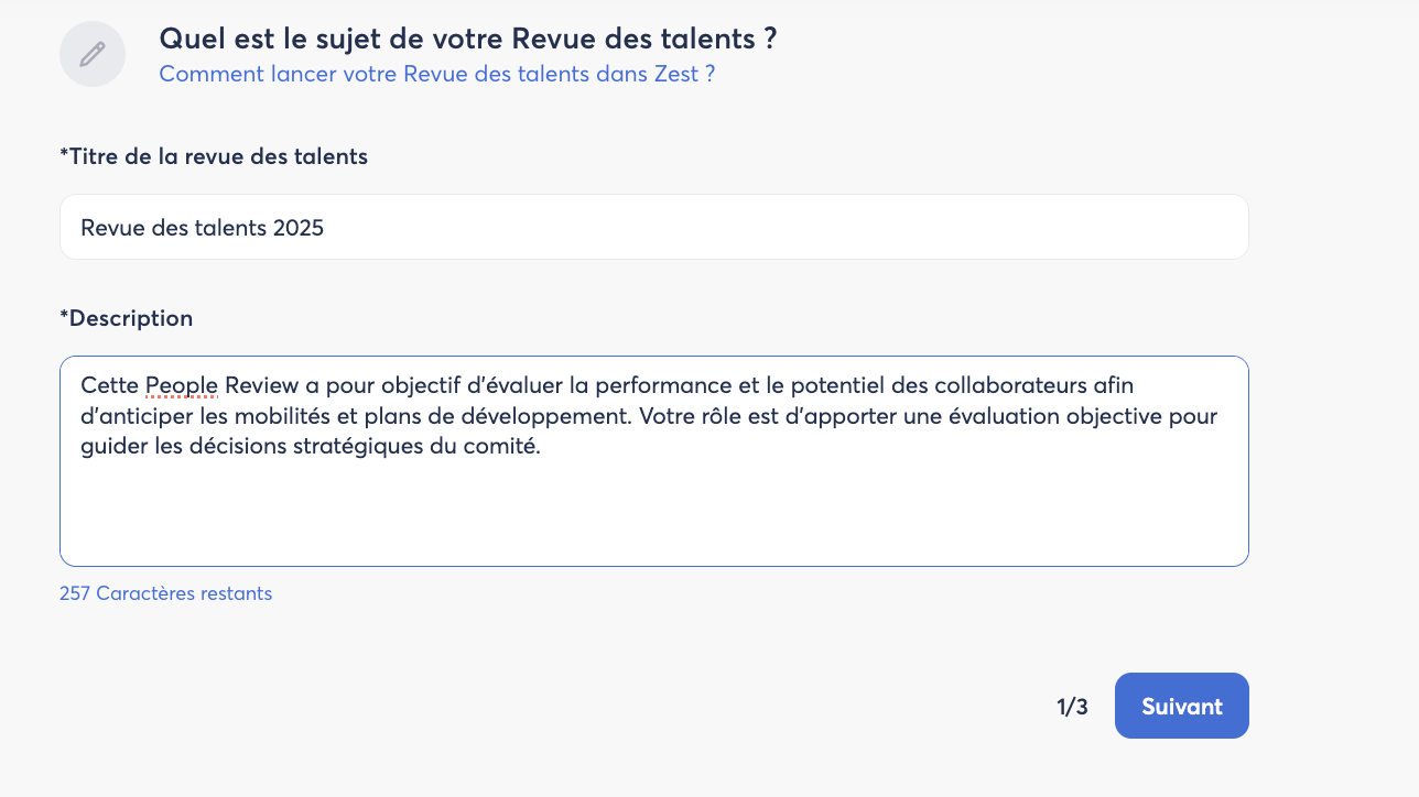 - Objectifs : Quel est l'objectif principal de votre People Review ? Diagnostic des talents, plan de succession, augmentation, formation ?