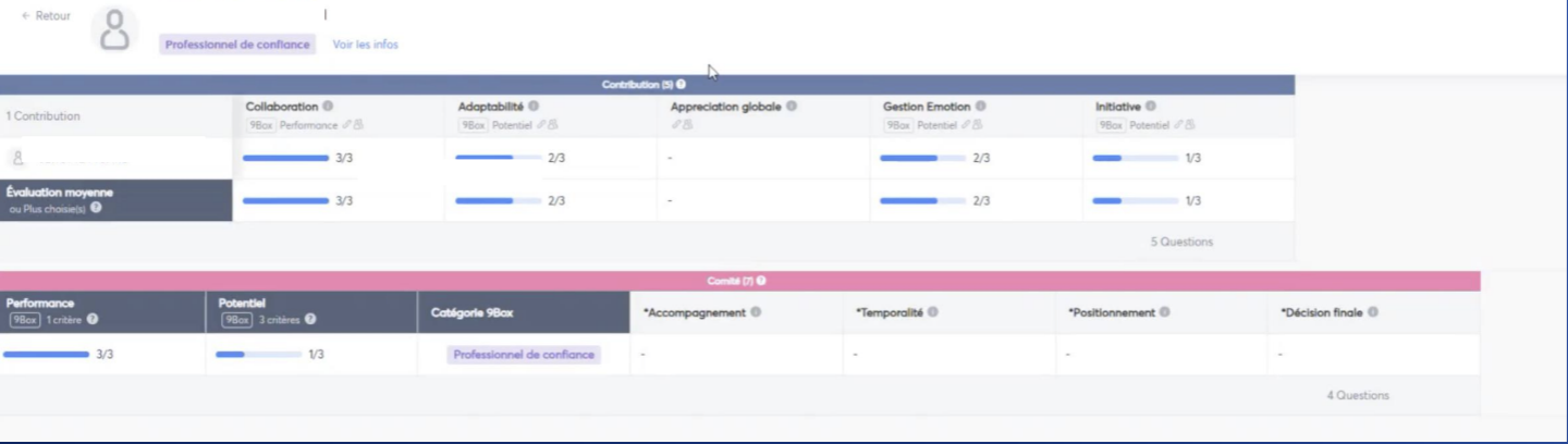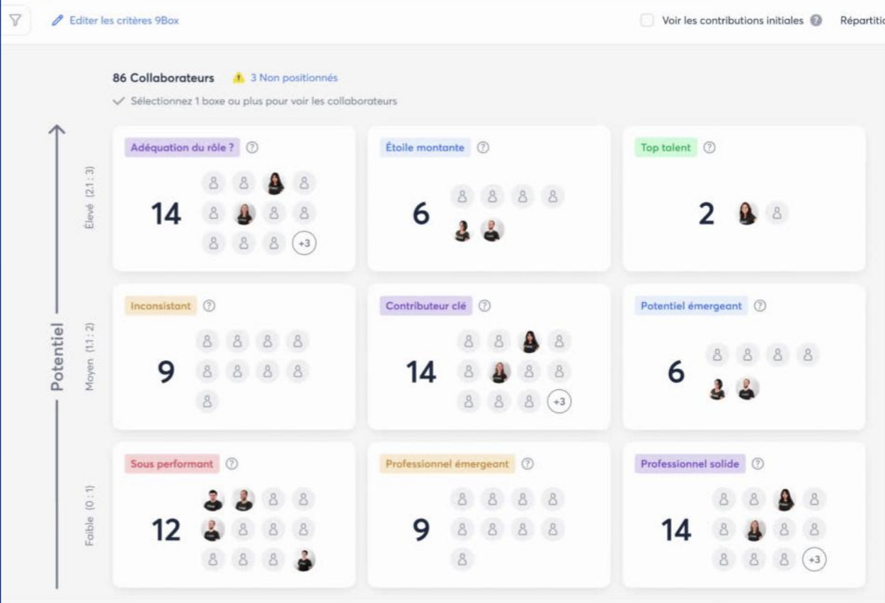 - Visualisation des collaborateurs sur la matrice 9Box une fois que toutes les questions ont été remplies