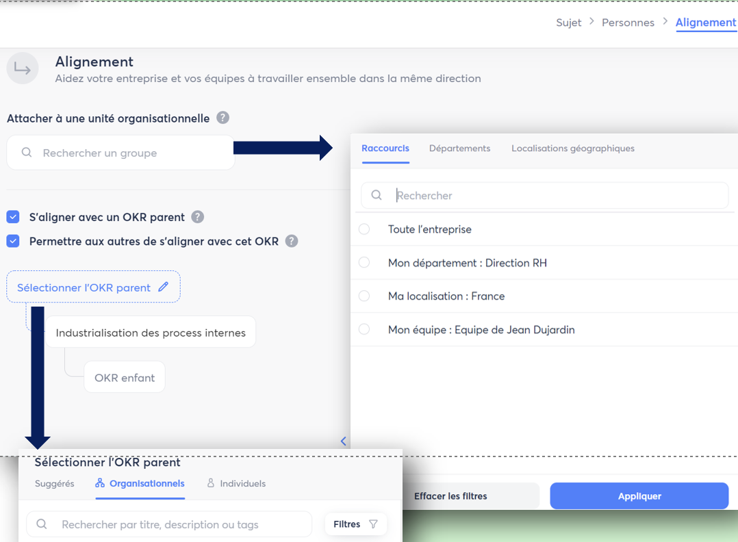 - Possibilité de créer un objectif sur lequel d’autres pourront s’aligner