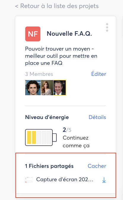 - Les fichiers sont visibles uniquement par les membres du projet.