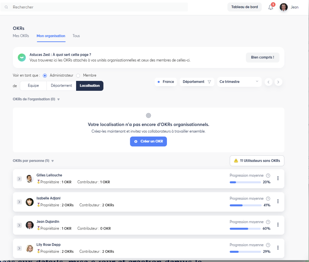 - Filtre des organisations sans OKRs