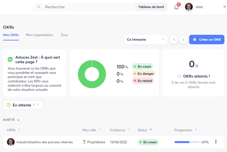 Menu → Réussir → OKRs
