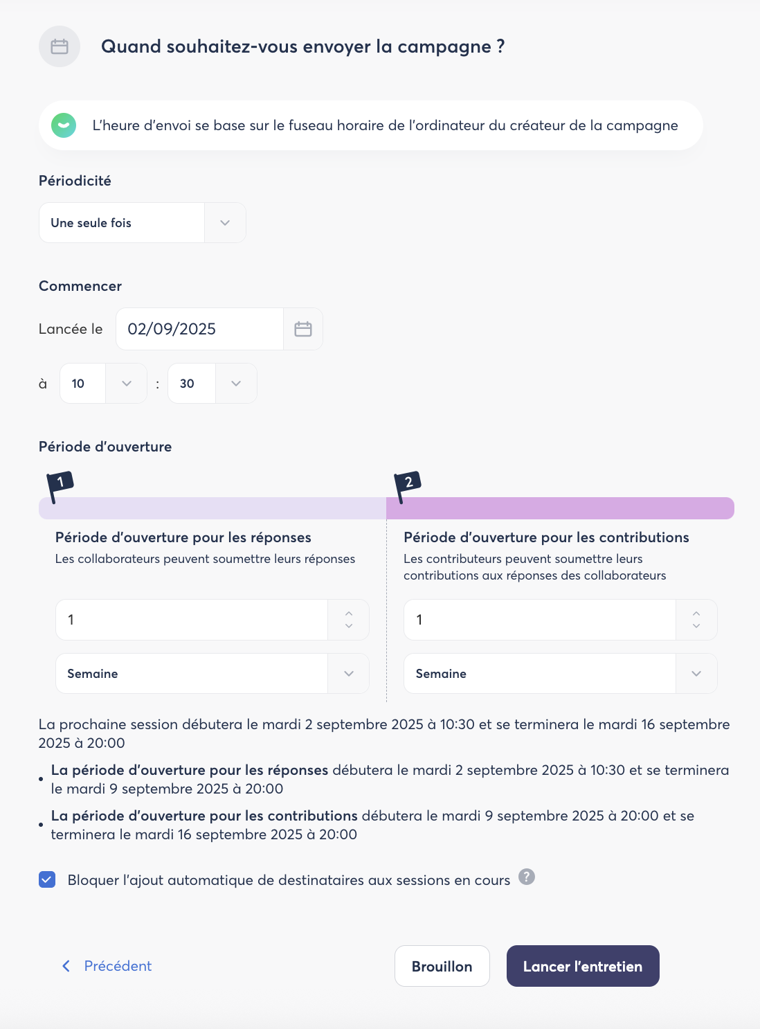 - Paramétrer les droits d’accès (ex. : visibilité des réponses, rôle du manager, validations nécessaires).