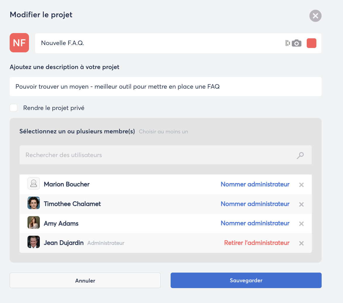 ❓ Comment gérer un projet : ajouter ou modifier les membres et administrateurs ?