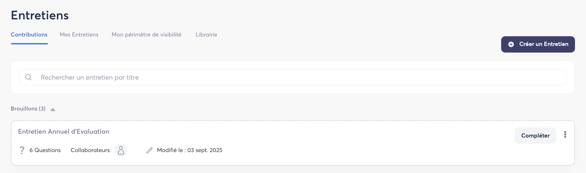 - Un entretien en brouillon peut être finalisé pour être prêt à être lancé.