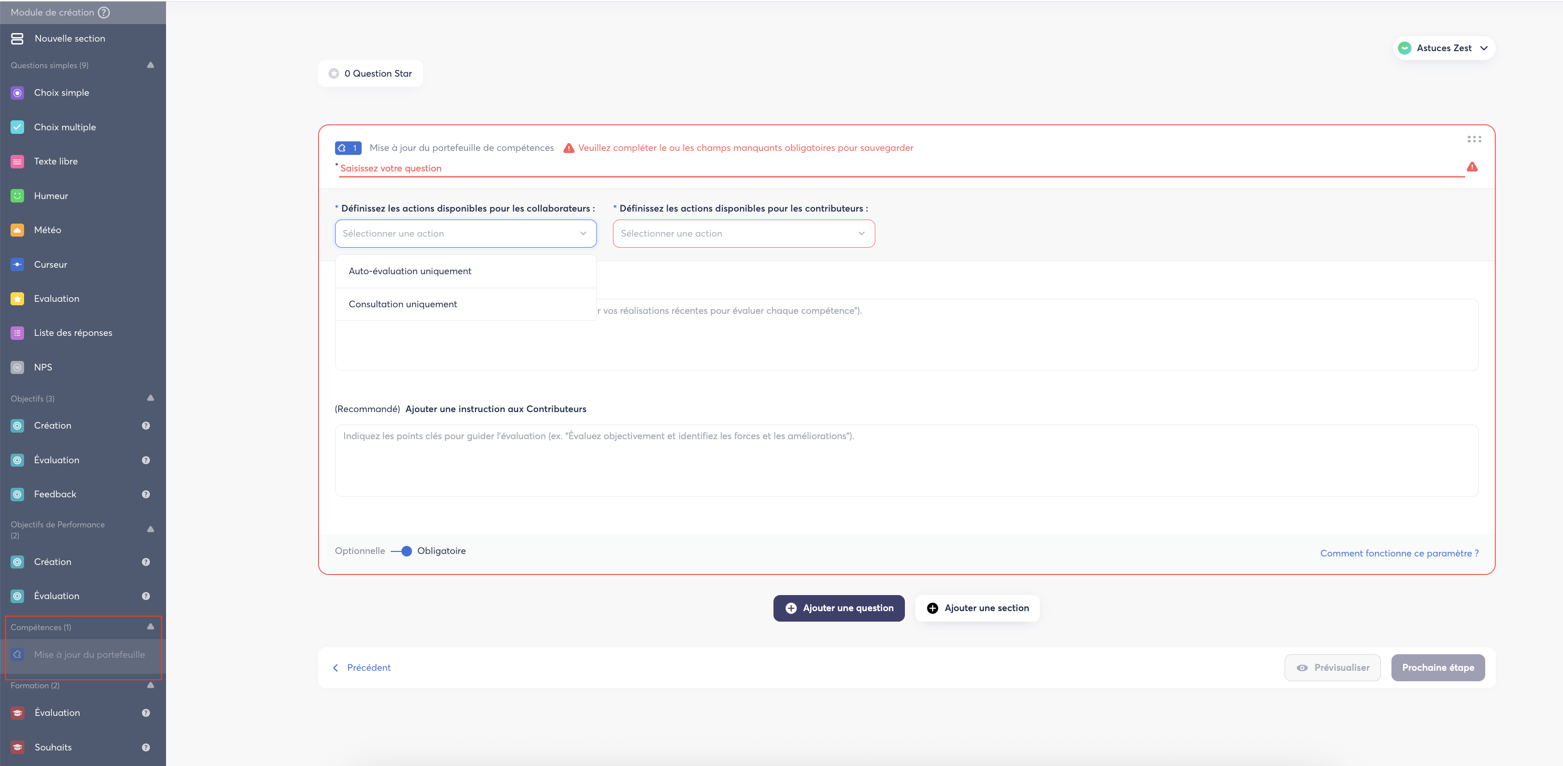 Dans Zest, les entretiens permettent non seulement d’évaluer les compétences existantes mais aussi d’en créer de nouvelles directement pendant le processus.