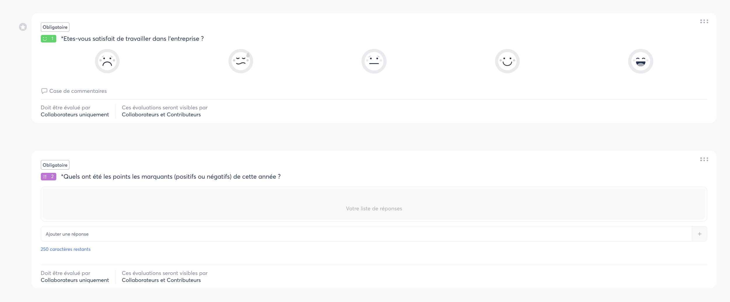 - Contributeur uniquement : visibles et complétées uniquement par les managers/contributeurs.