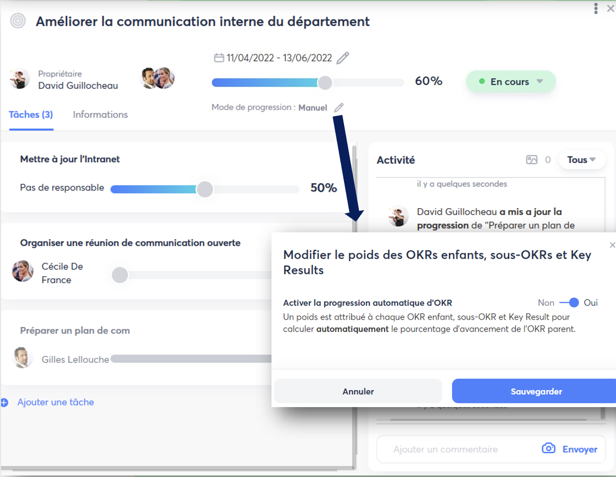 - Progression calculée automatiquement