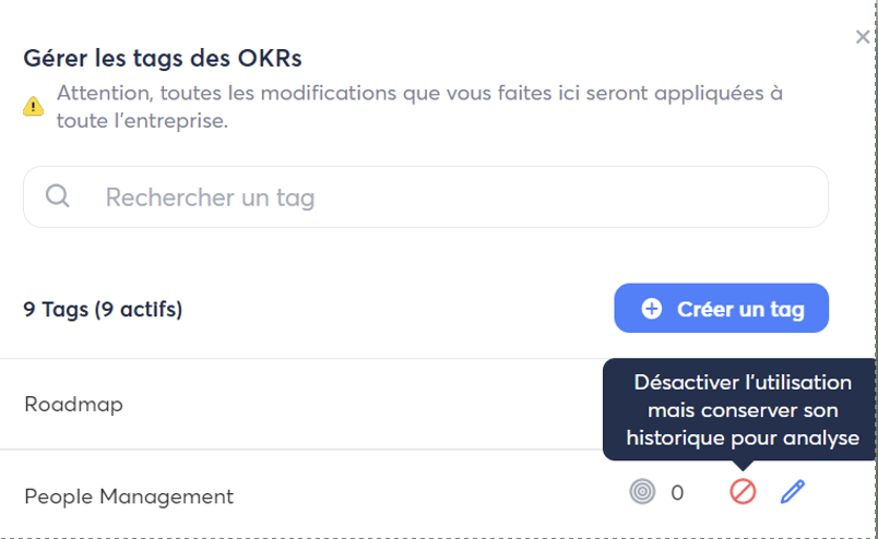 - ⚠️ Un tag désactivé ne pourra plus être réajouté après suppression