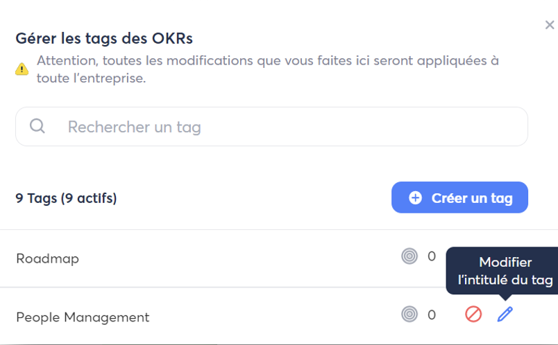 - Un tag est disponible pour tous les collaborateurs
