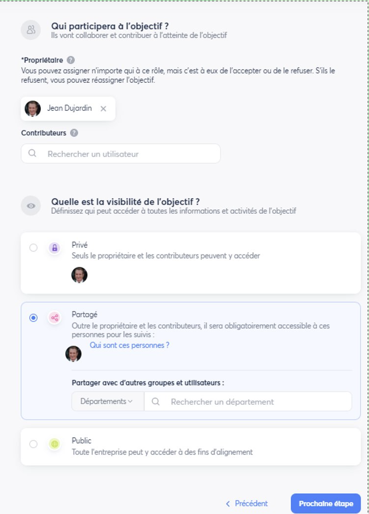 - Possibilité de créer un objectif sur lequel d’autres pourront s’aligner