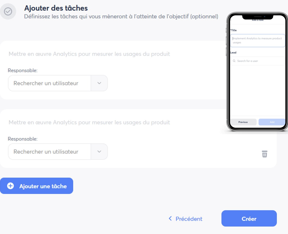 ✅ Étape 4 (optionnelle) : Tâches / Key Results