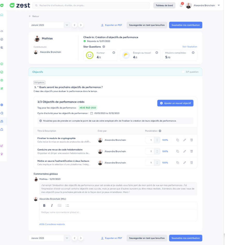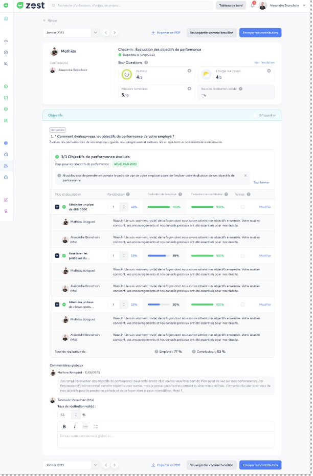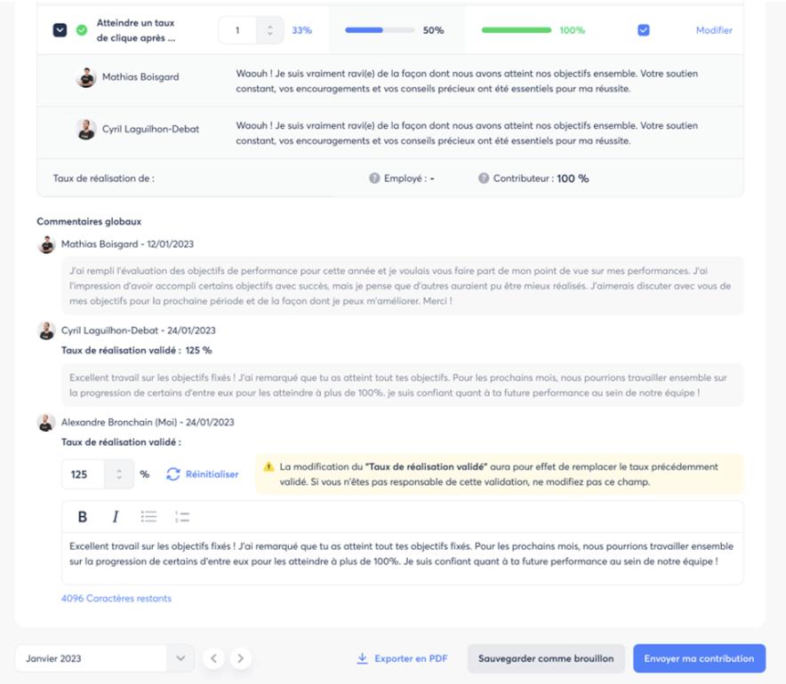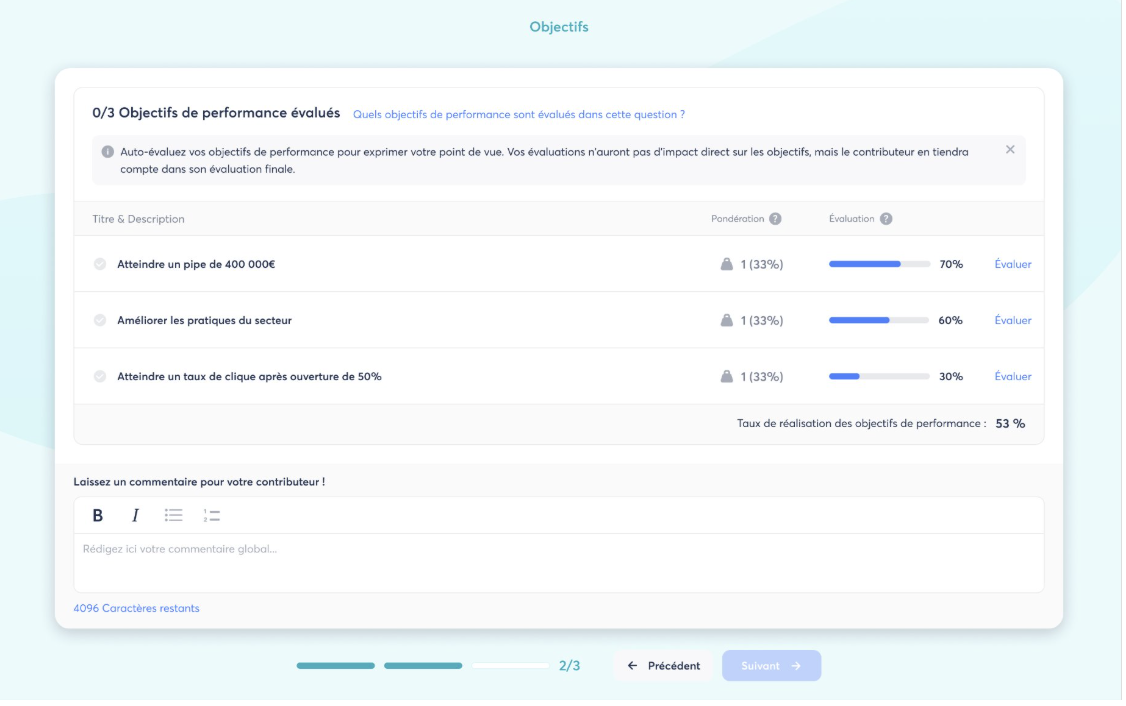 - Le Manager / Contributeur peut quand même évaluer les objectifs