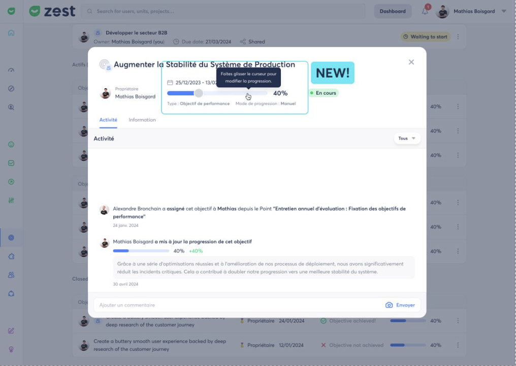 Cet article détaille les rôles, les notifications, les étapes de création, ainsi que les fonctionnalités de mise à jour et de pilotage des Objectifs et Compétences dans Zest.