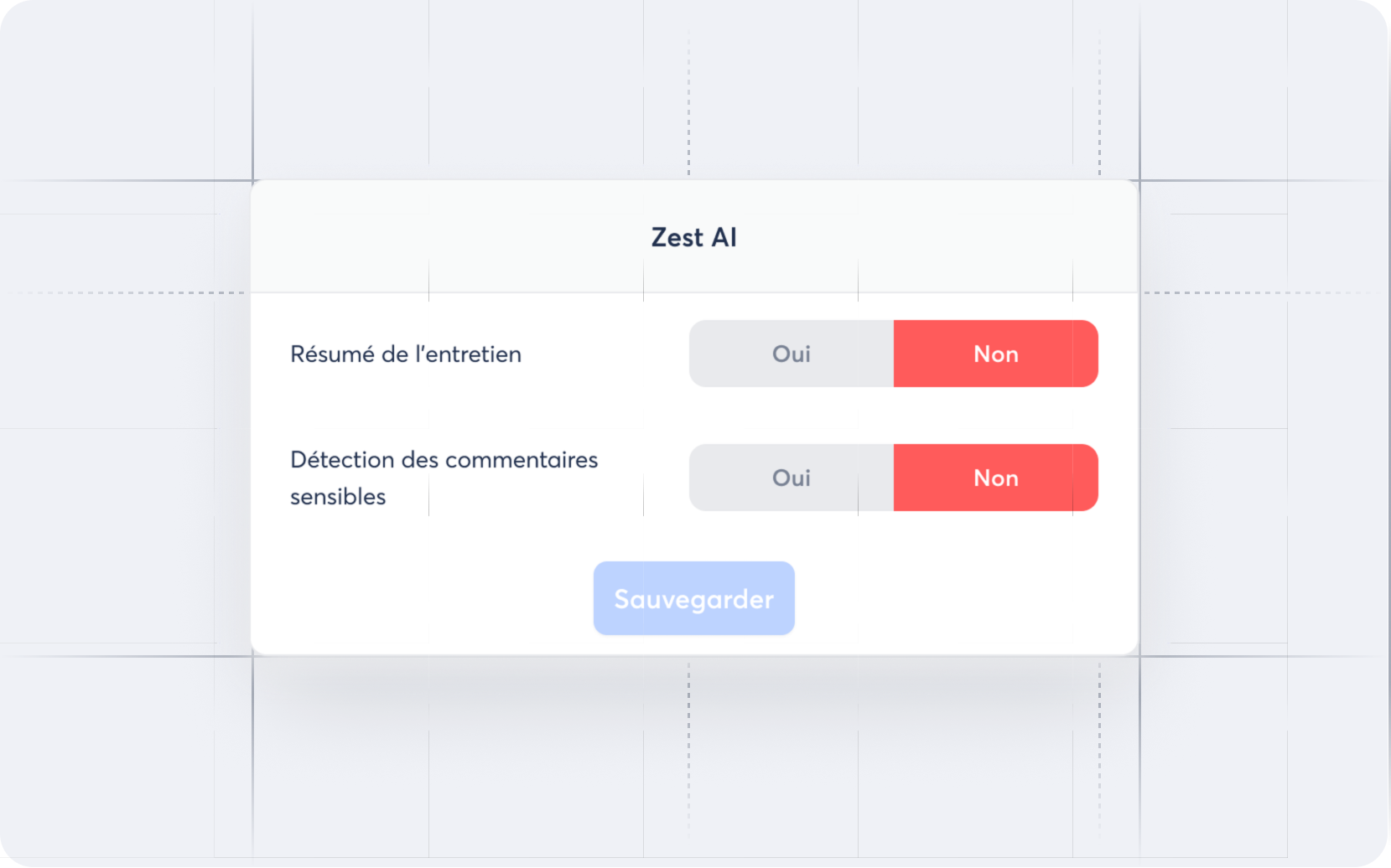 - Activez/désactivez la détection des commentaires sensibles pour les entretiens et/ou les sondages + l’engageomètre.
